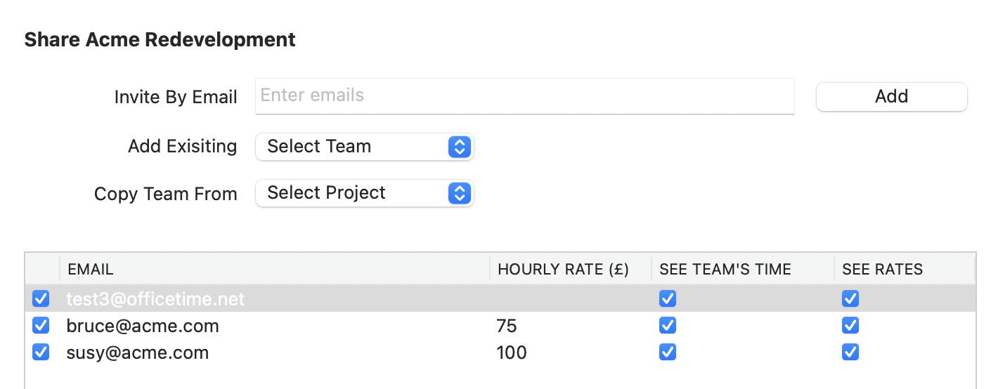 Starting today, you can set per person rates. Simply edit the team on any shared project and set the rates per person. If you don’t set a rate, that person uses category rates like before.