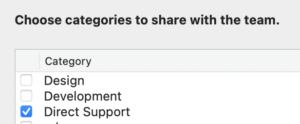 You may wish to share out extra categories by clicking the Share Categories button on the project sharing screen. It’s not needed to share categories already in use in this project.